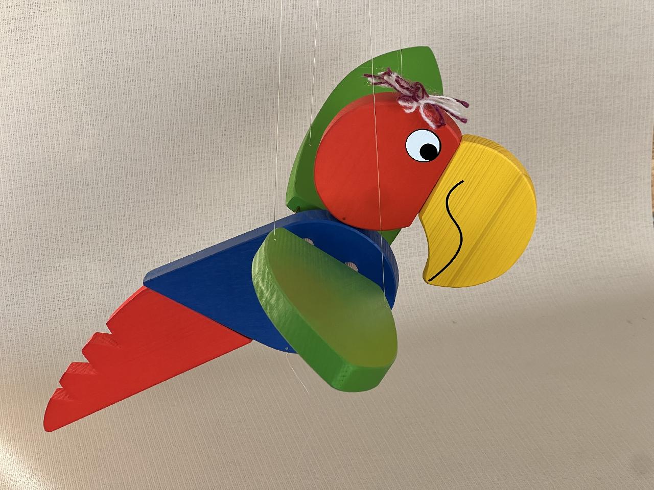 Dřevěný létající papoušek velký - modrý